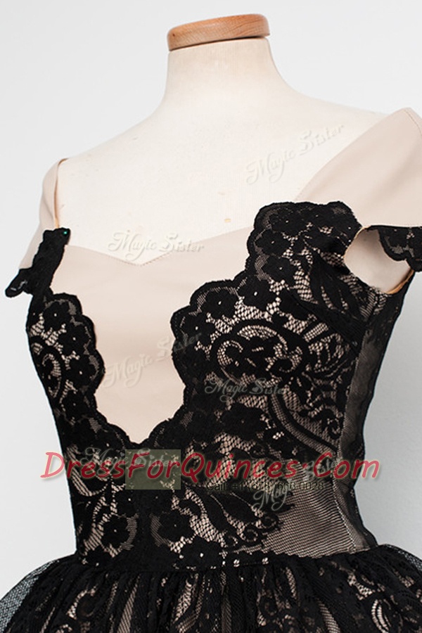 Comfortable Scoop Black Cap Sleeves Lace Knee Length Dress for Prom