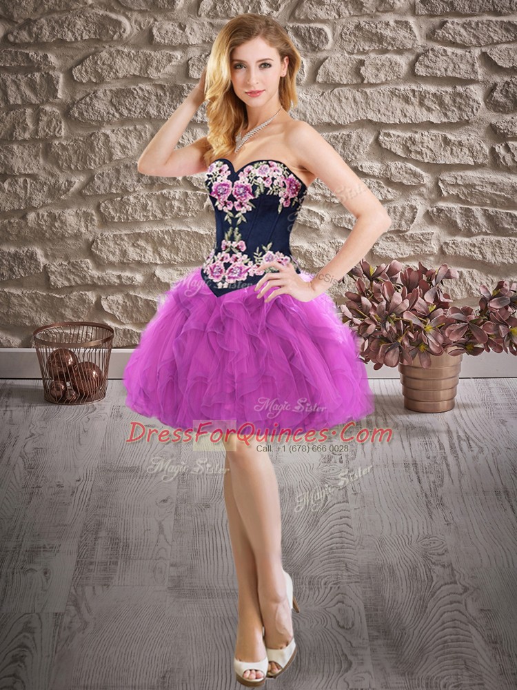 Dynamic Sleeveless Lace Up Mini Length Embroidery Prom Dress