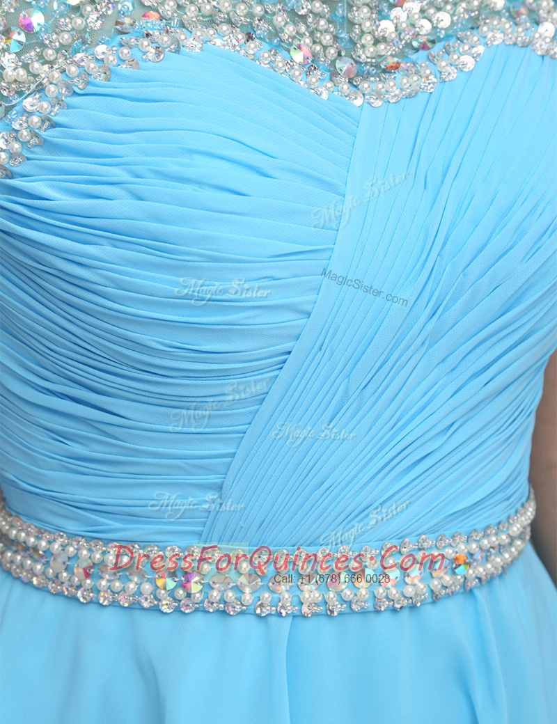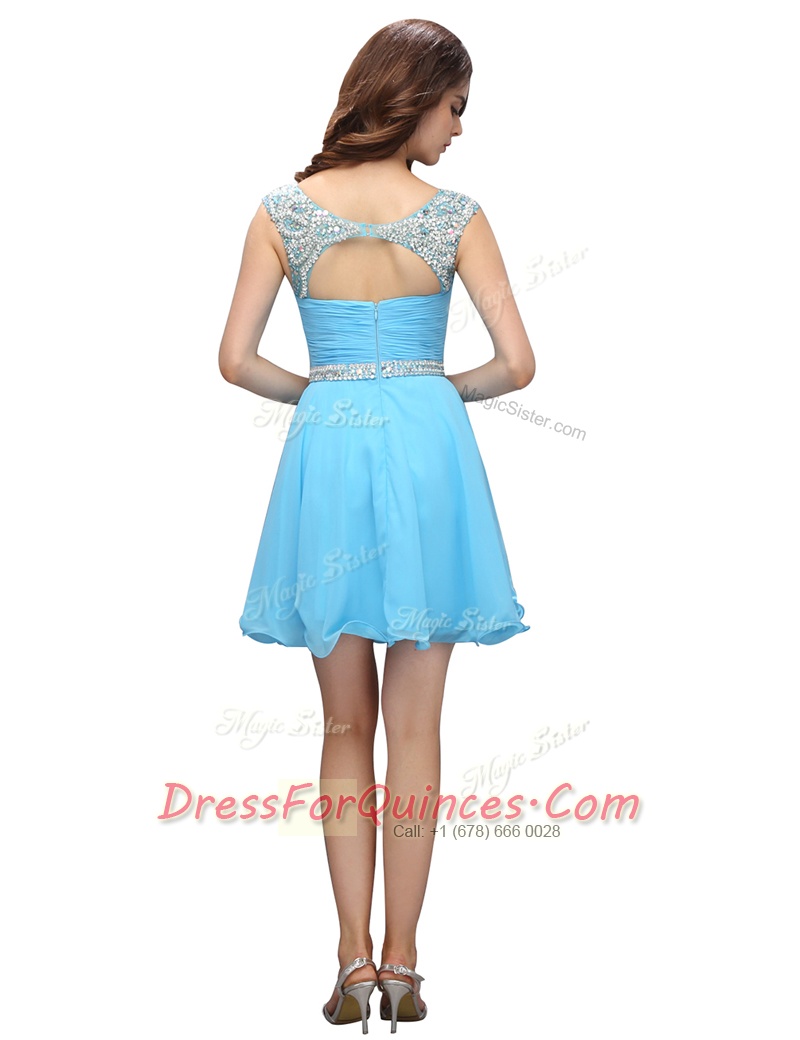 Edgy Bateau Sleeveless Zipper Prom Party Dress Baby Blue Organza