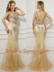 Excellent Mermaid Scoop Cap Sleeves Tulle Prom Gown Beading Brush Train Backless