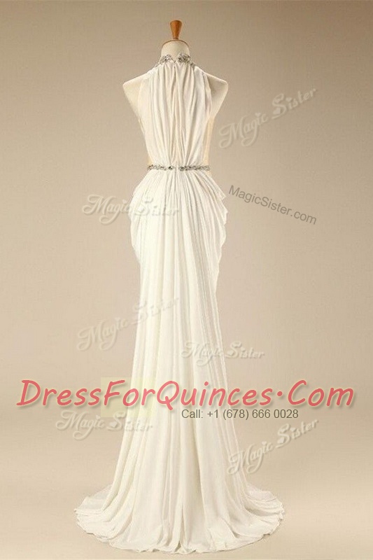 Exceptional White Empire Beading and Belt Zipper Chiffon Sleeveless