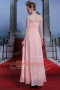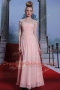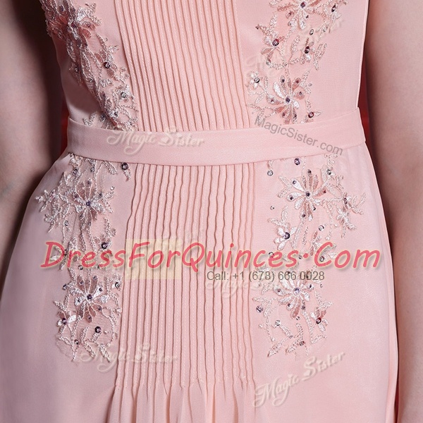 Floor Length Baby Pink Dress for Prom Chiffon Cap Sleeves Beading