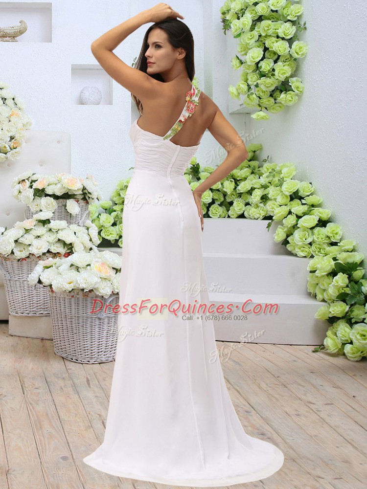 Free and Easy White Zipper Sweetheart Appliques and Ruching Elastic Woven Satin Sleeveless
