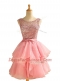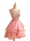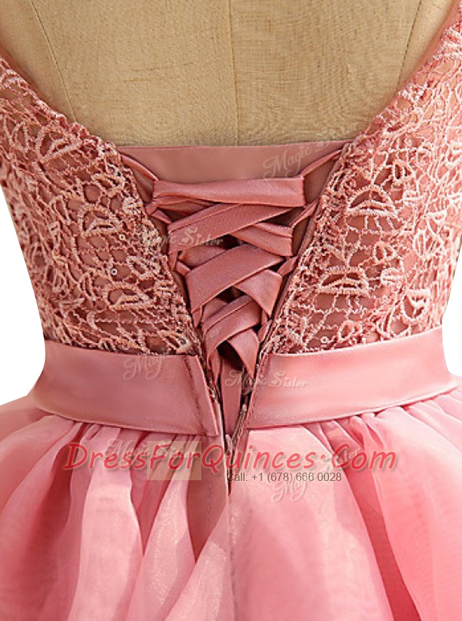 Glamorous Scoop Sleeveless Knee Length Lace and Ruching Lace Up with Pink