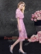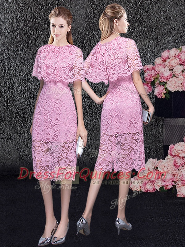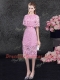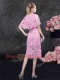 Great Lace Knee Length Pink Prom Dress Scoop Half Sleeves Zipper