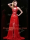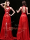 Halter Top Sleeveless Brush Train Backless Evening Dress Coral Red Chiffon and Lace
