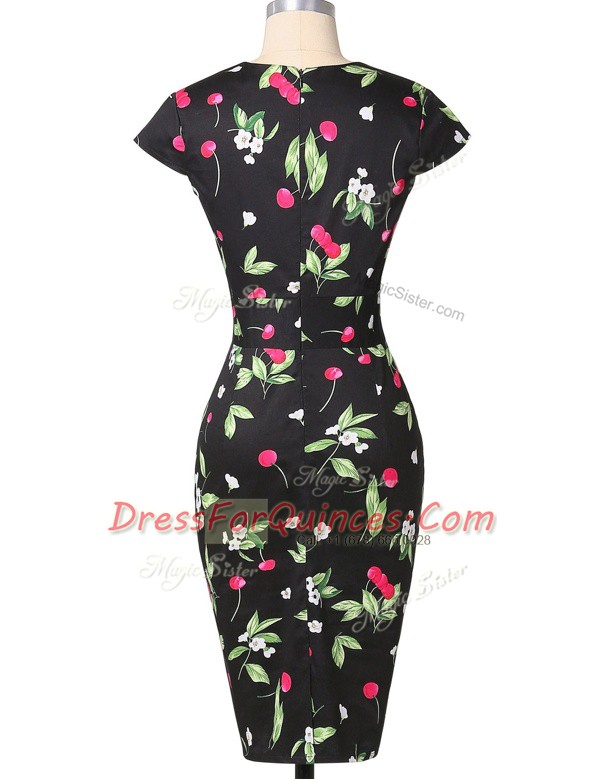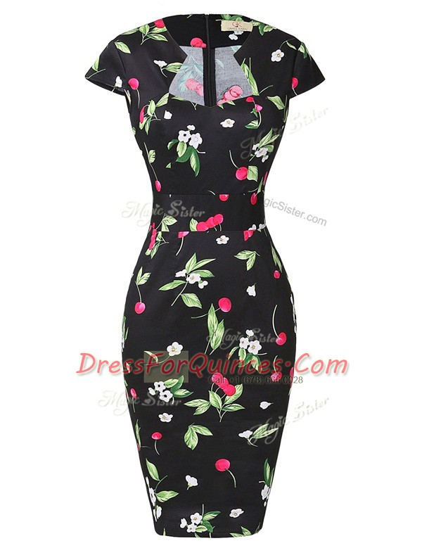 High Class Multi-color Zipper Homecoming Dress Pattern Cap Sleeves Knee Length