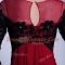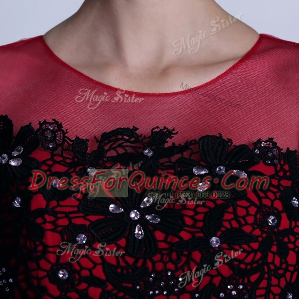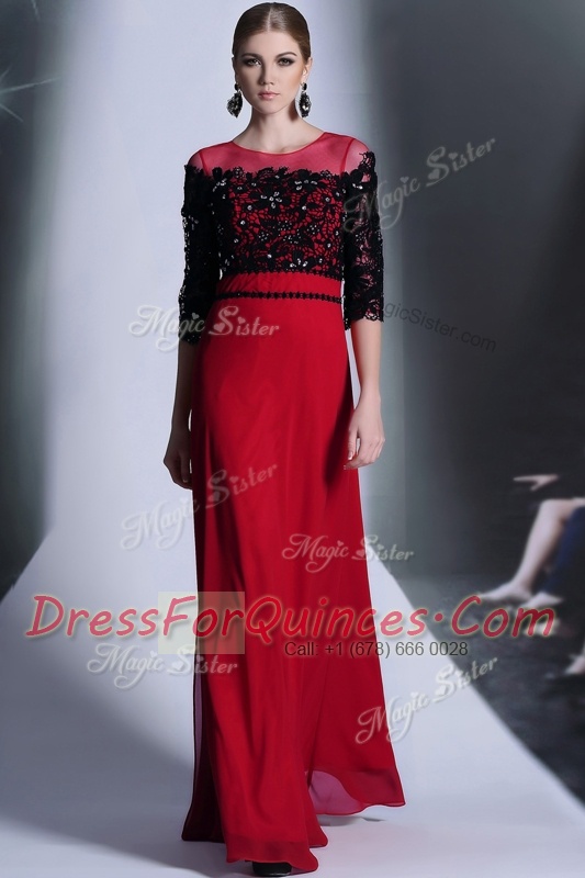 High Class Scoop Red And Black 3 4 Length Sleeve Floor Length Beading and Appliques Clasp Handle Homecoming Dress