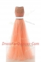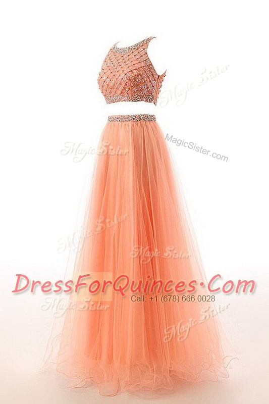 Hot Sale Scoop Beading and Belt Dress for Prom Orange Side Zipper Sleeveless Sweep Train