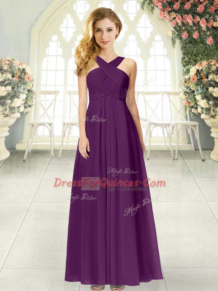 Ideal Purple Straps Neckline Ruching Prom Party Dress Sleeveless Zipper