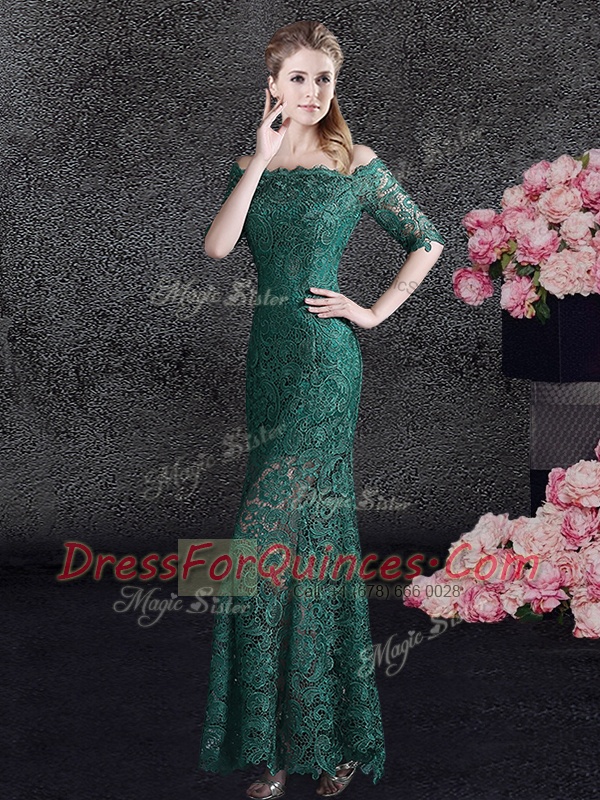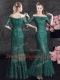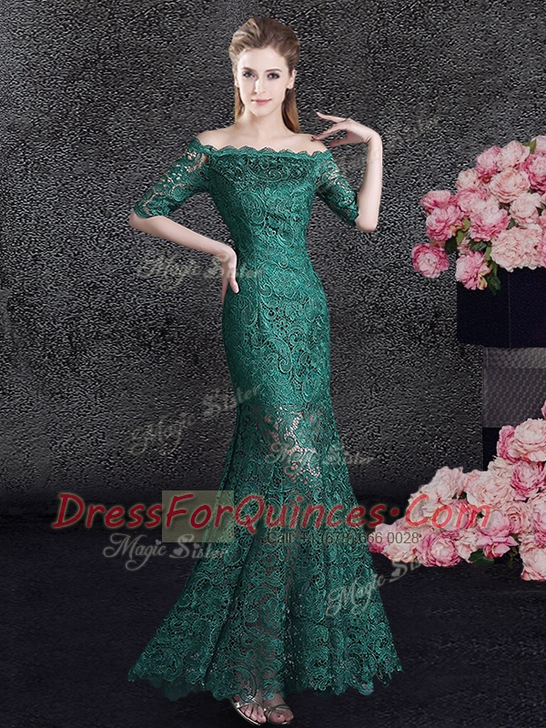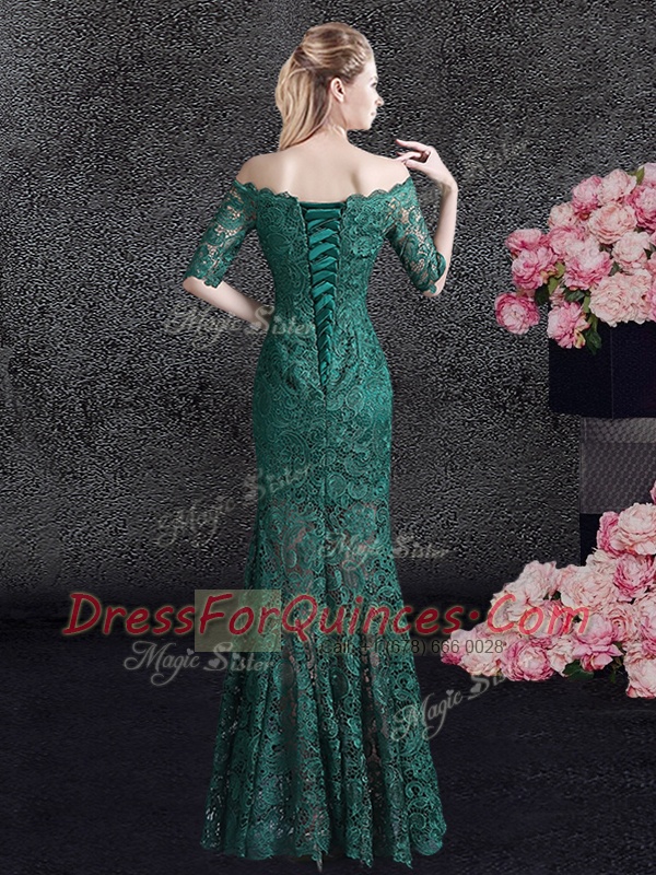 Mermaid Lace Scalloped Half Sleeves Lace Up Lace in Dark Green