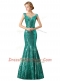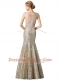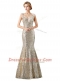 Modern Mermaid Sequins V-neck Sleeveless Zipper Prom Evening Gown Champagne Sequined
