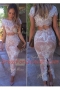 Modern Scoop Pink Clasp Handle Dress for Prom Lace Short Sleeves Ankle Length