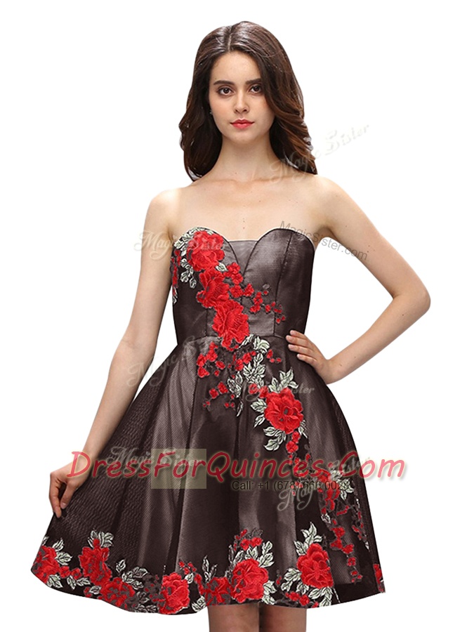 Multi-color A-line Embroidery Prom Evening Gown Zipper Silk Like Satin Sleeveless Knee Length