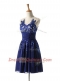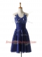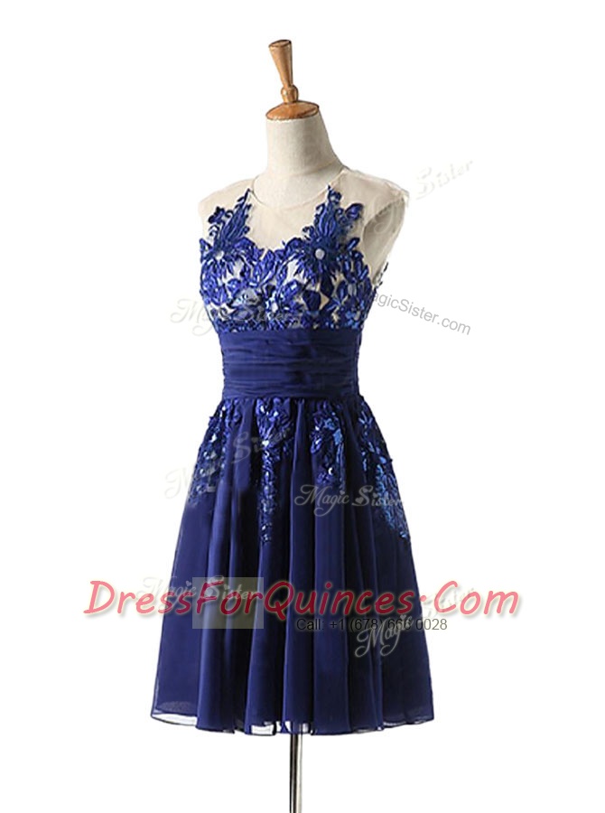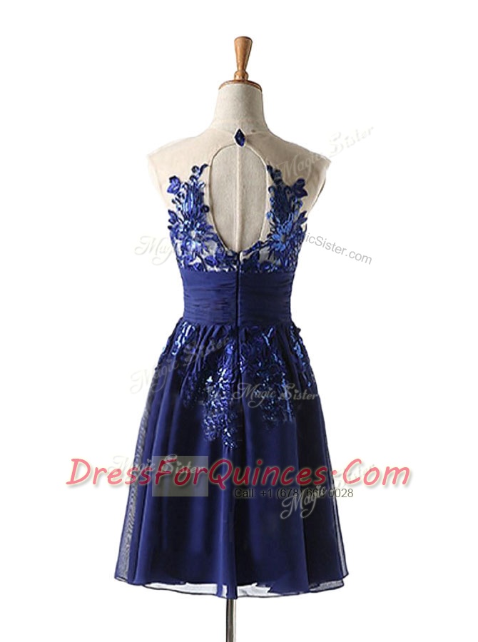 Navy Blue A-line Scoop Sleeveless Chiffon Knee Length Backless Appliques Prom Dresses