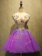 New Arrival Mini Length Purple Prom Gown Organza Sleeveless Embroidery