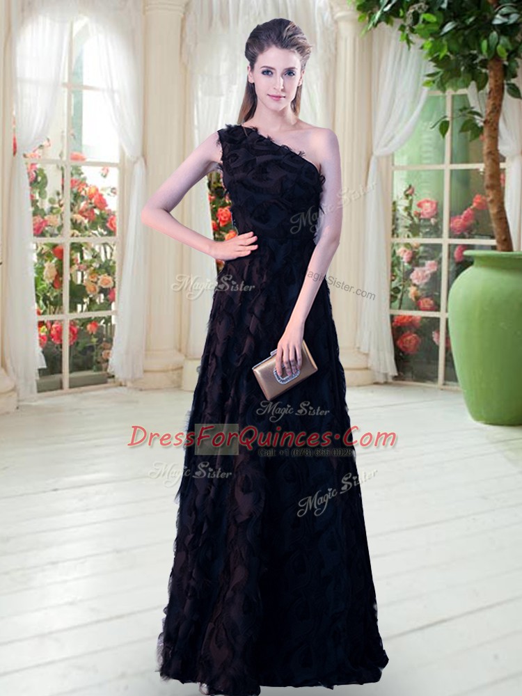 One Shoulder Sleeveless Zipper Prom Dress Black