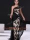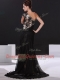 One Shoulder With Train Side Zipper Homecoming Dress Black for Prom and Party with Lace Brush Train