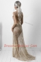 Pretty Sleeveless With Train Lace Backless Prom Evening Gown with Champagne Brush Train