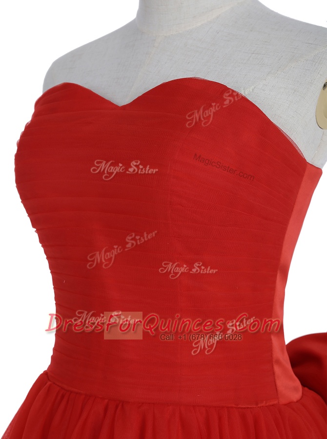 Pretty Tulle Sleeveless Knee Length Prom Gown and Ruching