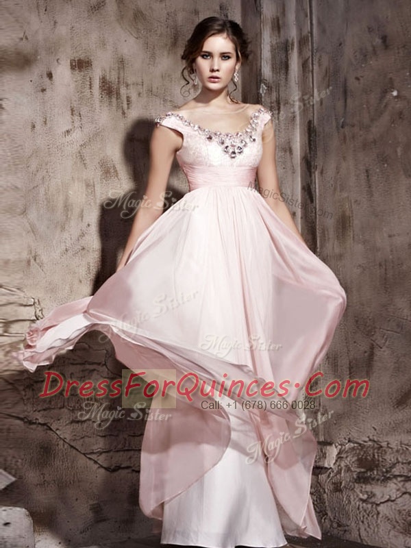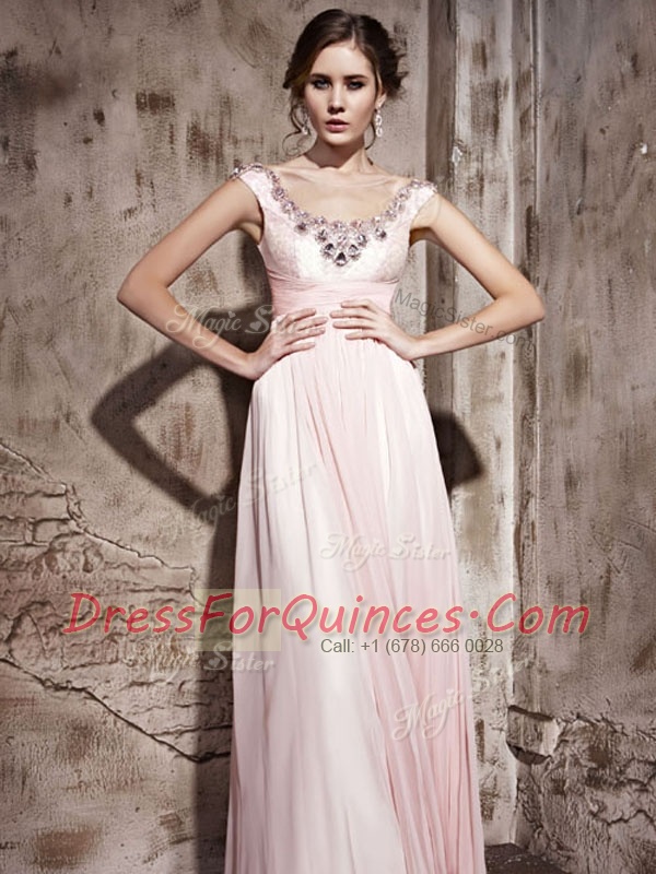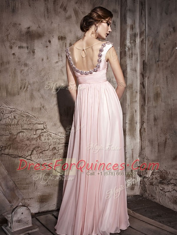 Scoop Baby Pink Sleeveless Chiffon Backless Prom Gown for Prom and Party