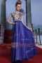 Scoop Royal Blue Column/Sheath Embroidery and Sequins Evening Dress Zipper Chiffon Cap Sleeves Floor Length