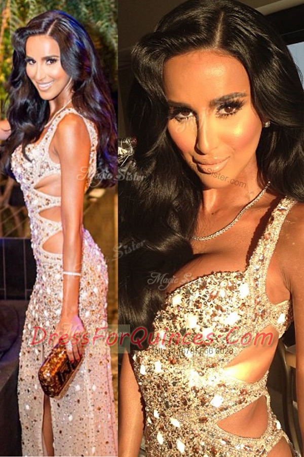 Scoop Sequined Sleeveless Floor Length Prom Dress and Beading and Sequins
