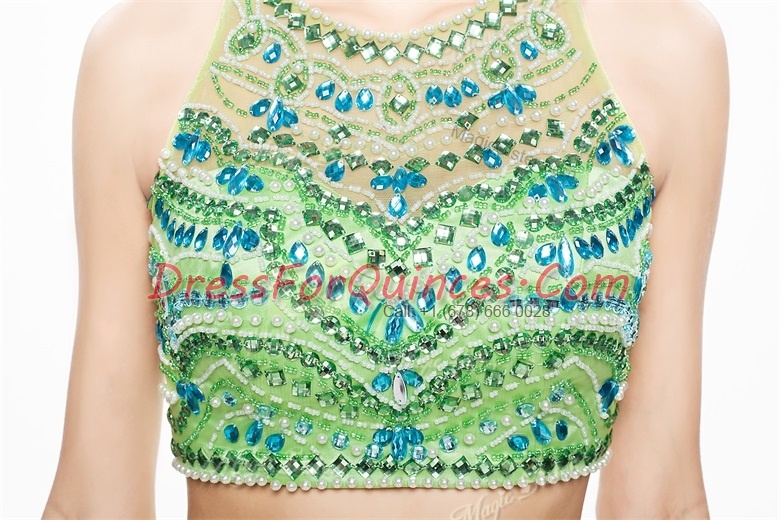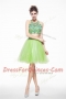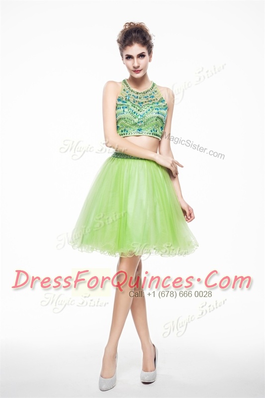 Scoop Sleeveless Beading Knee Length Prom Evening Gown