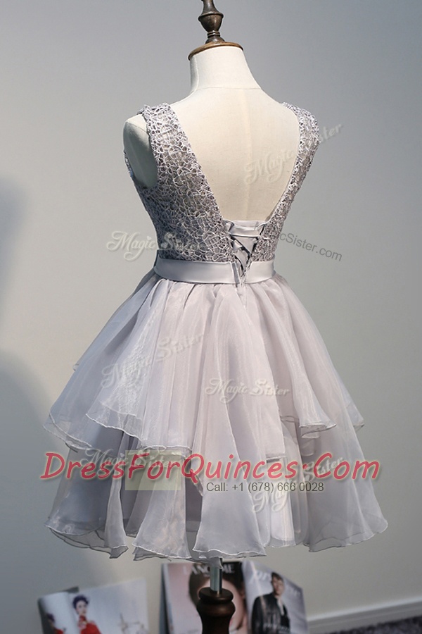 Scoop Sleeveless Lace Up Knee Length Beading Prom Dress