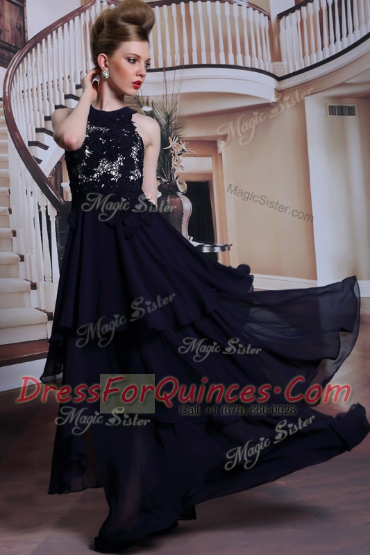 Scoop Sleeveless Lace Up Prom Dress Black Chiffon