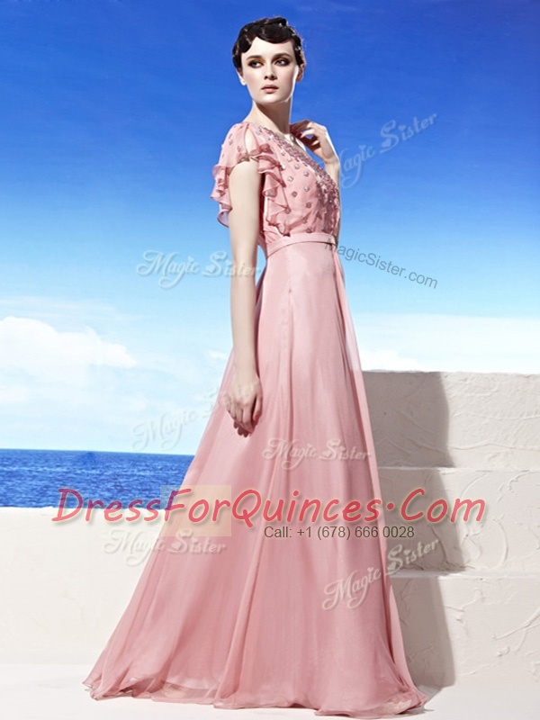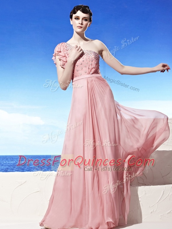 Simple One Shoulder Sleeveless Beading Side Zipper Prom Gown