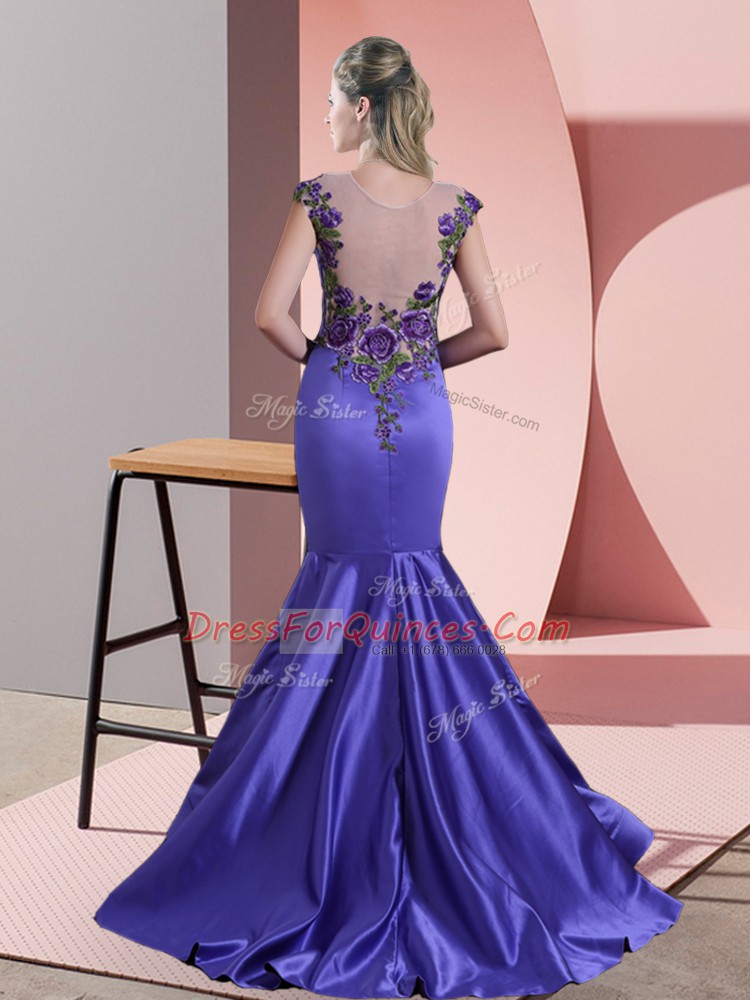 Sleeveless Satin Sweep Train Side Zipper Dress for Prom in Green with Beading and Lace and Appliques