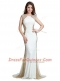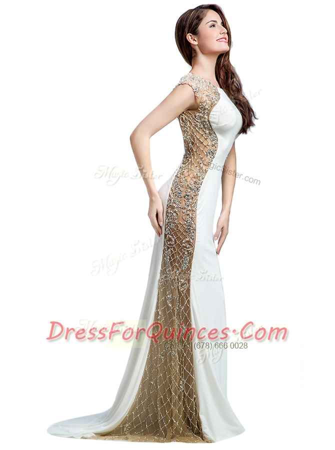 Unique White Chiffon Backless Scoop Sleeveless With Train Evening Dress Brush Train Beading