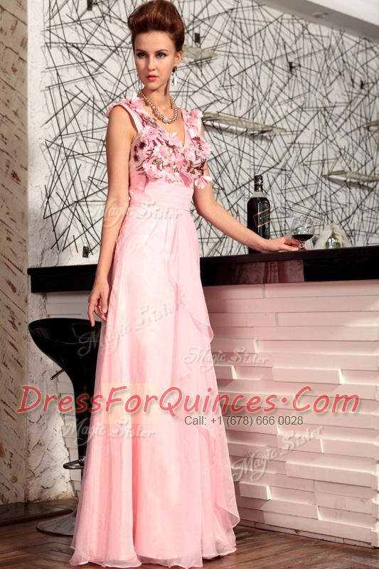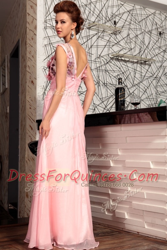 Vintage Appliques Prom Evening Gown Baby Pink Zipper Sleeveless Floor Length