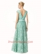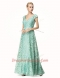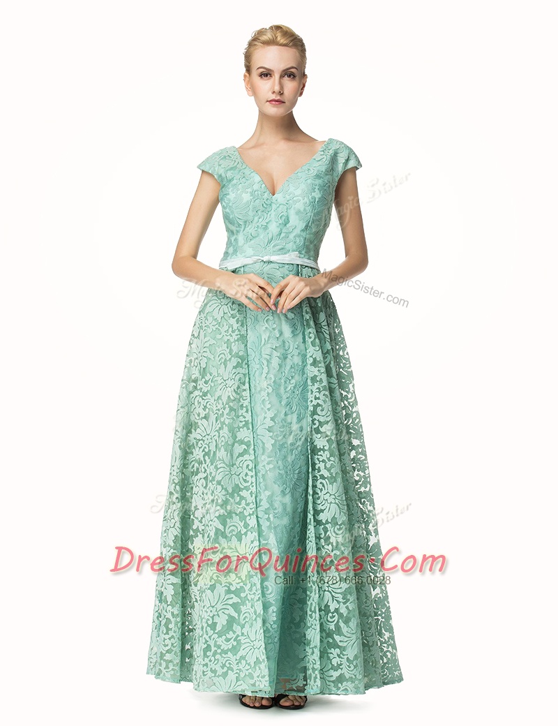 V-neck Cap Sleeves Lace Prom Dresses Pleated Zipper