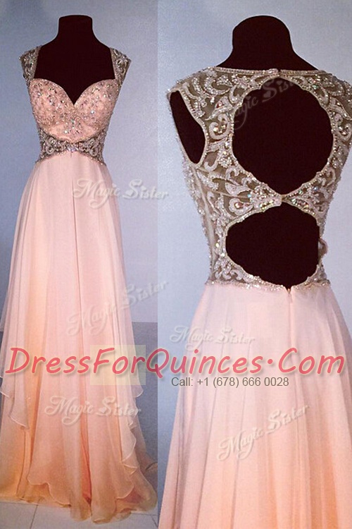 V-neck Sleeveless Chiffon Dress for Prom Beading Zipper