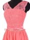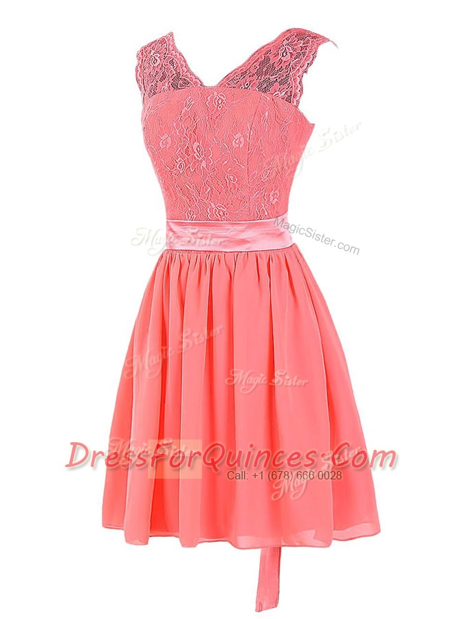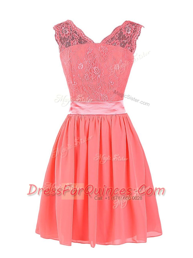 Watermelon Red V-neck Zipper Lace and Sashes ribbons Prom Party Dress Sleeveless