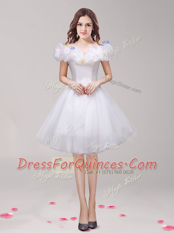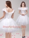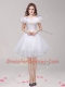 White Prom Party Dress Prom and Party and For with Appliques and Ruffles Off The Shoulder Sleeveless Lace Up