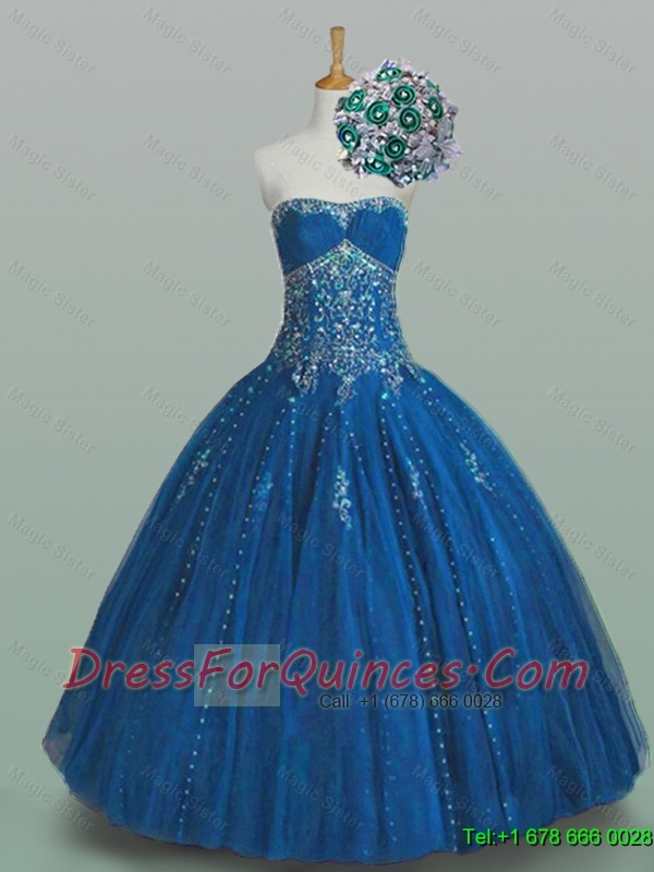 2015 Romantic Strapless Beaded Quinceanera Gowns in Tulle