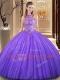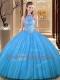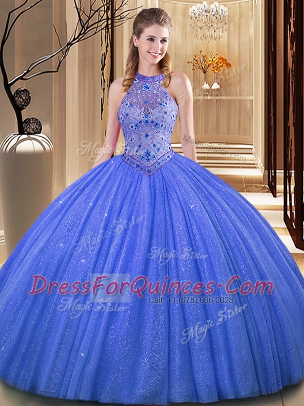 Baby Blue Sleeveless Floor Length Embroidery Backless Quinceanera Dress