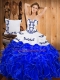 Blue And White Lace Up Sweet 16 Dress Embroidery and Ruffles Sleeveless Floor Length