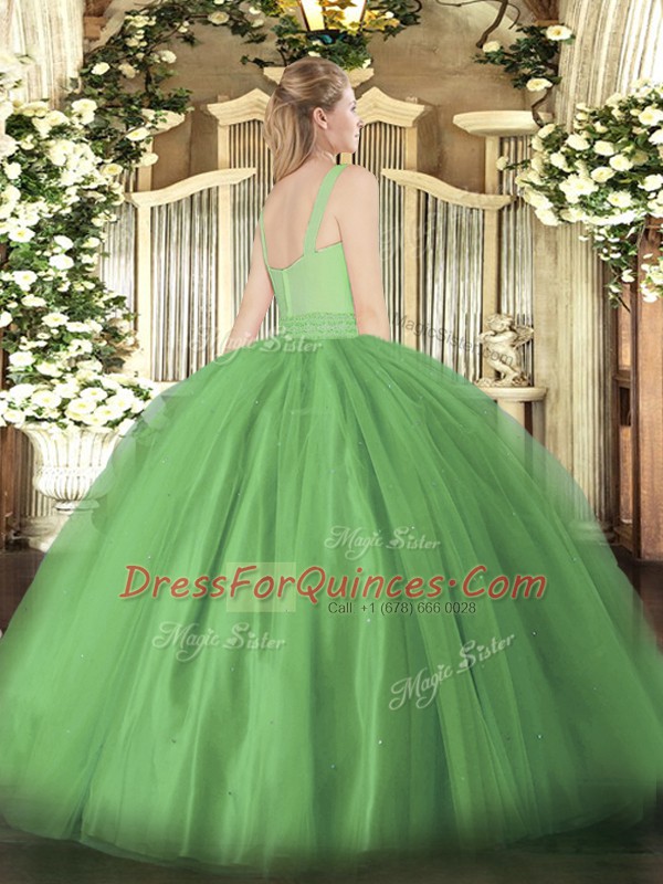 Captivating Ball Gowns 15th Birthday Dress Green Straps Tulle Sleeveless Floor Length Zipper