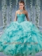 Classical Beaded and Applique Big Puffy Quinceanera Dresses in Aqua Blue
