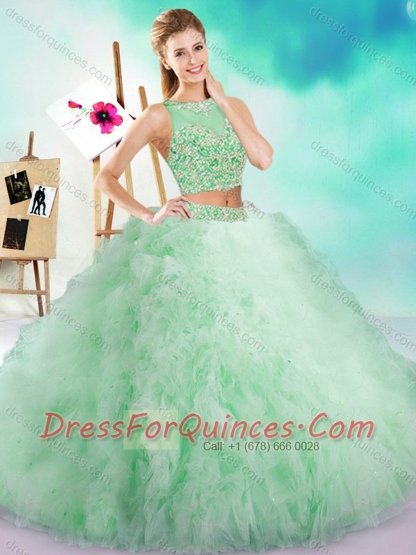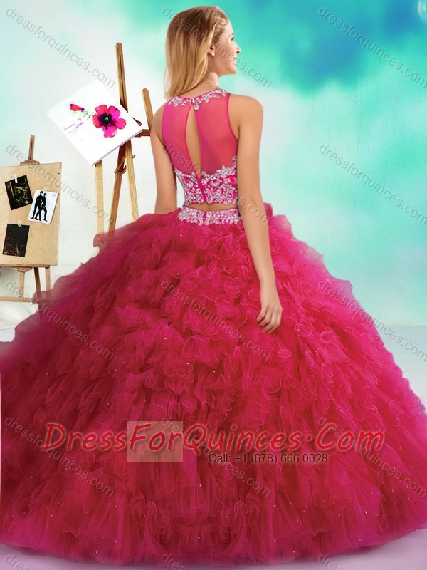 Classical Beaded and Ruffled Fuchsia Quinceanera Dresses with See Through