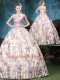 Colorful Straps Appliques and Pattern 15 Quinceanera Dress Multi-color Lace Up Sleeveless Floor Length