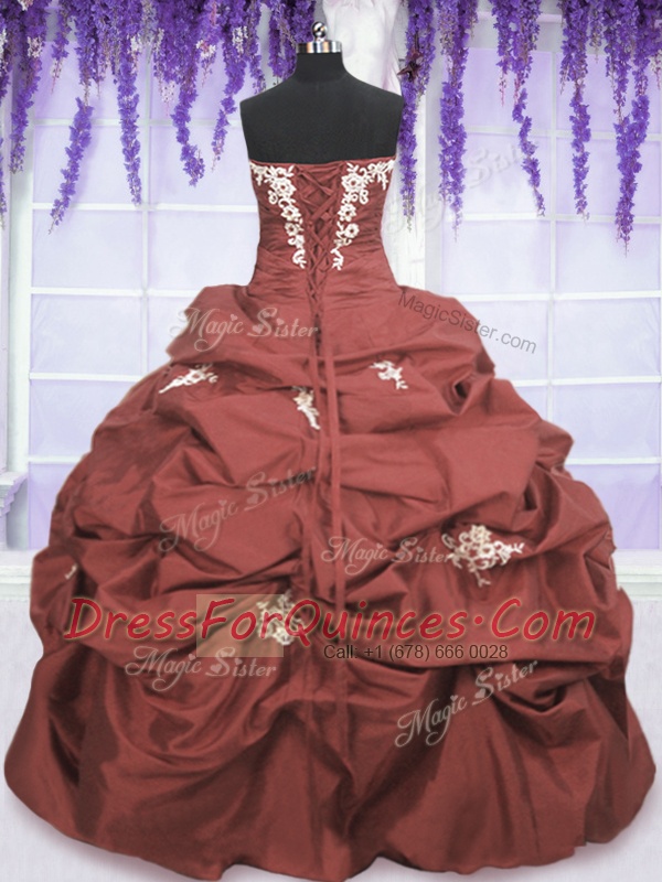 Custom Fit Pick Ups Rust Red Sleeveless Taffeta Lace Up Quinceanera Dress for Military Ball and Sweet 16 and Quinceanera