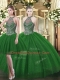 Dark Green Tulle Lace Up High-neck Sleeveless Floor Length Quinceanera Gown Beading