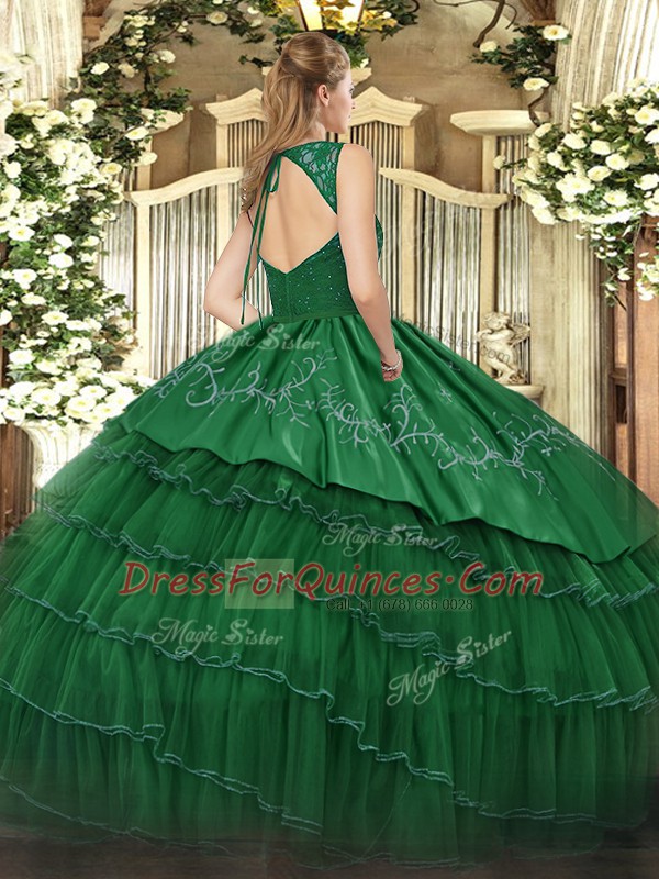 Decent Sleeveless Backless Floor Length Beading and Lace and Embroidery and Ruffled Layers Quince Ball Gowns