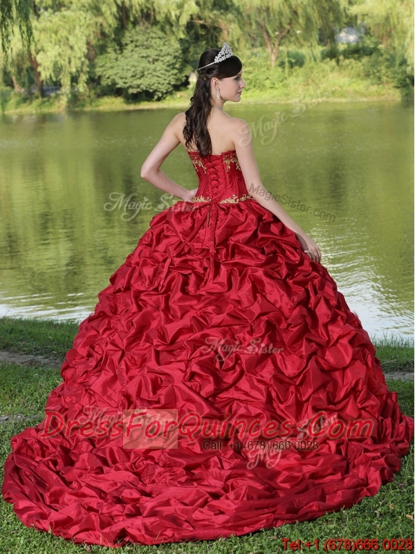 Discount Appliques and Pick Ups Brush Train Quinceanera Dresses