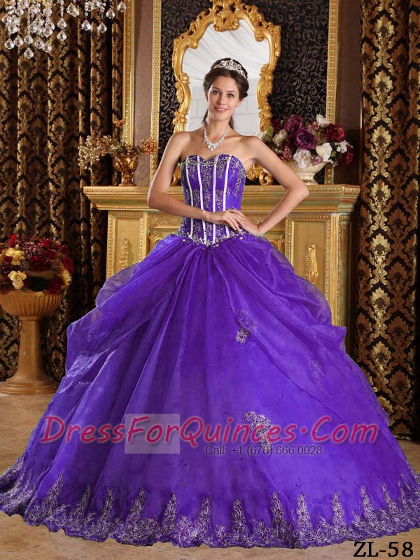 Discount Quinceanera Dress In Purple Ball Gown Sweetheart With Appliques Organza
